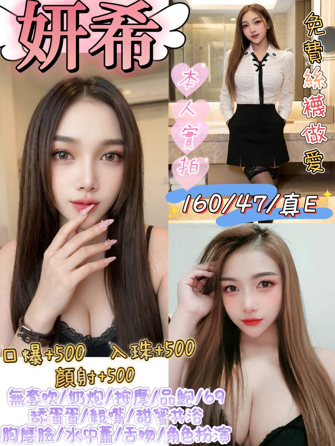 👍項目:無套吹/奶炮/按摩/品鮑/69/舔蛋蛋/親嘴/甜蜜共浴/胸摩臉/水中蕭/舌吻/角色扮演