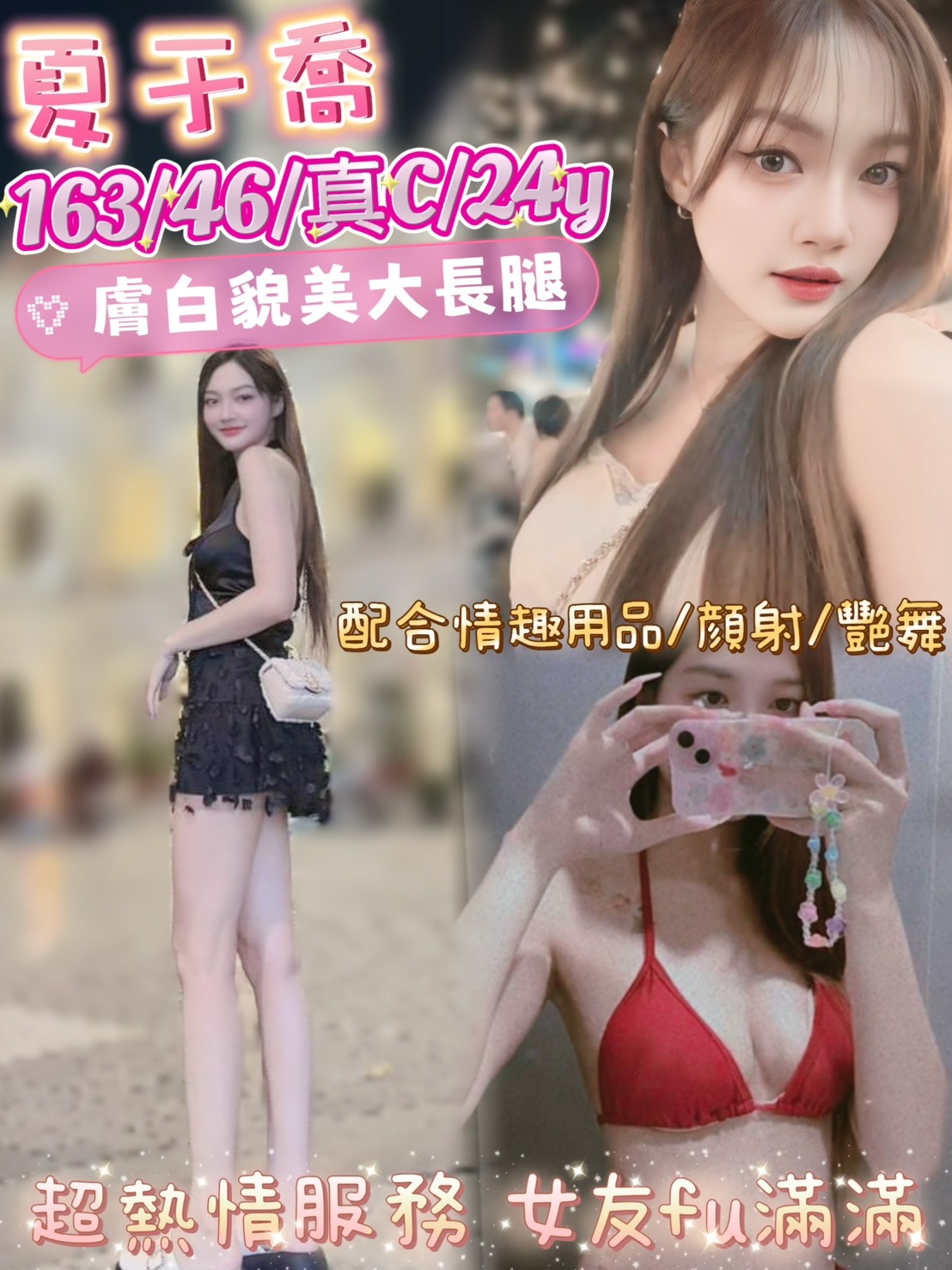 👍項目:戴套做/無套吹/按摩/甜蜜共浴/品鮑/角色扮演/舔蛋/69/舌吻/足交/奶炮/情趣用品