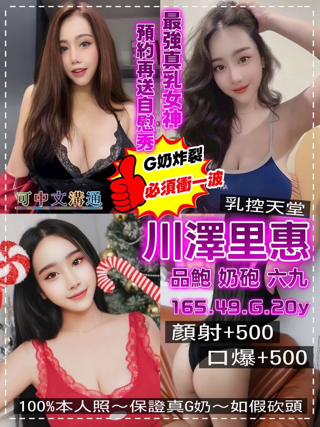 無套吹/戴套做/品鮮鮑/小親親/按摩/69/胸推/屁推/奶炮/殘廢澡